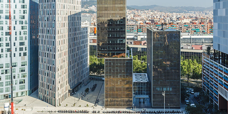 1500 estores interiores de enrollado para un total de 8000m² de tejido Screen Nature color 1134 Bronce