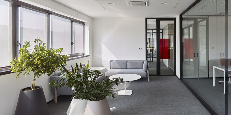 - Estores interiores con sistema ZIP con tejido Kibo 8500 color 3030 Charcoal para un ocultación total. El auditorio está equipado con un sistema de doble estores : una con el tejido M-Screen 8505 para atenuar la luz solar directa ; una con el tejido Kibo 8500 para un ocultación total.