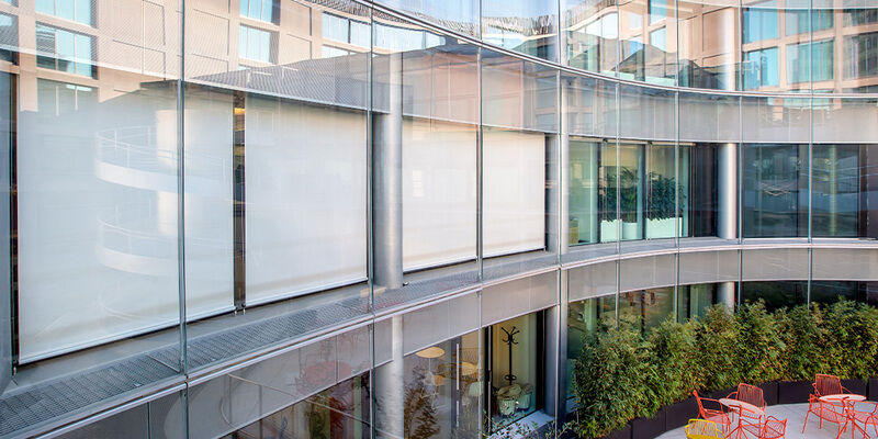 En total se instalaron 290 estores Resstende: 184 en el interior y 106 en el exterior. Se instalaron diferentes tejidos Mermet en función de las necesidades de protección solar: